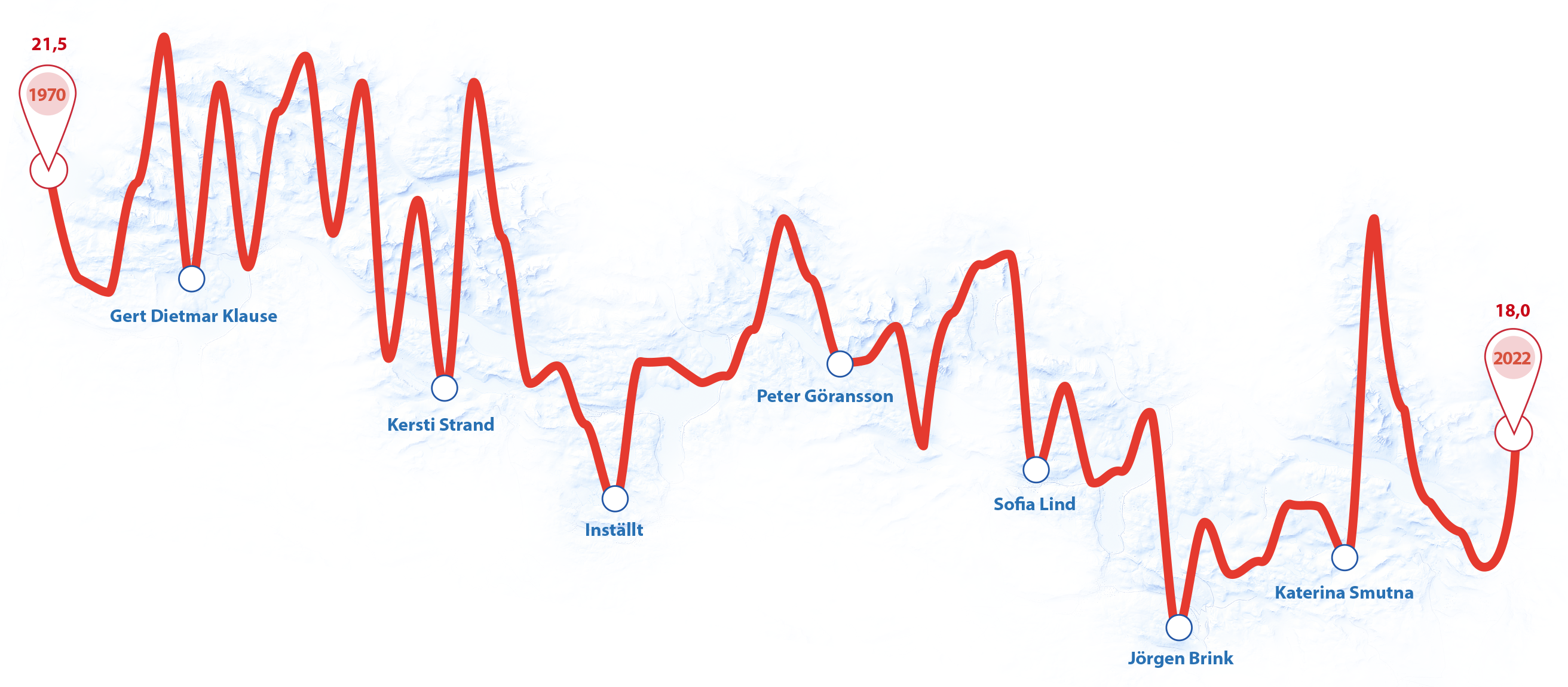 Bär en svart mössa under loppet i en tyst protest mot fossilreklamen som förstör vårt Vasalopp.